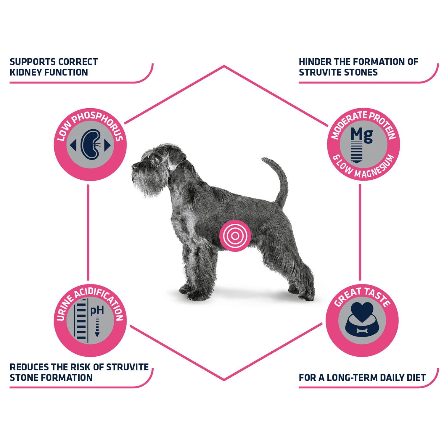 - Verzuring van de urine om de vorming van struviet tegen te gaan