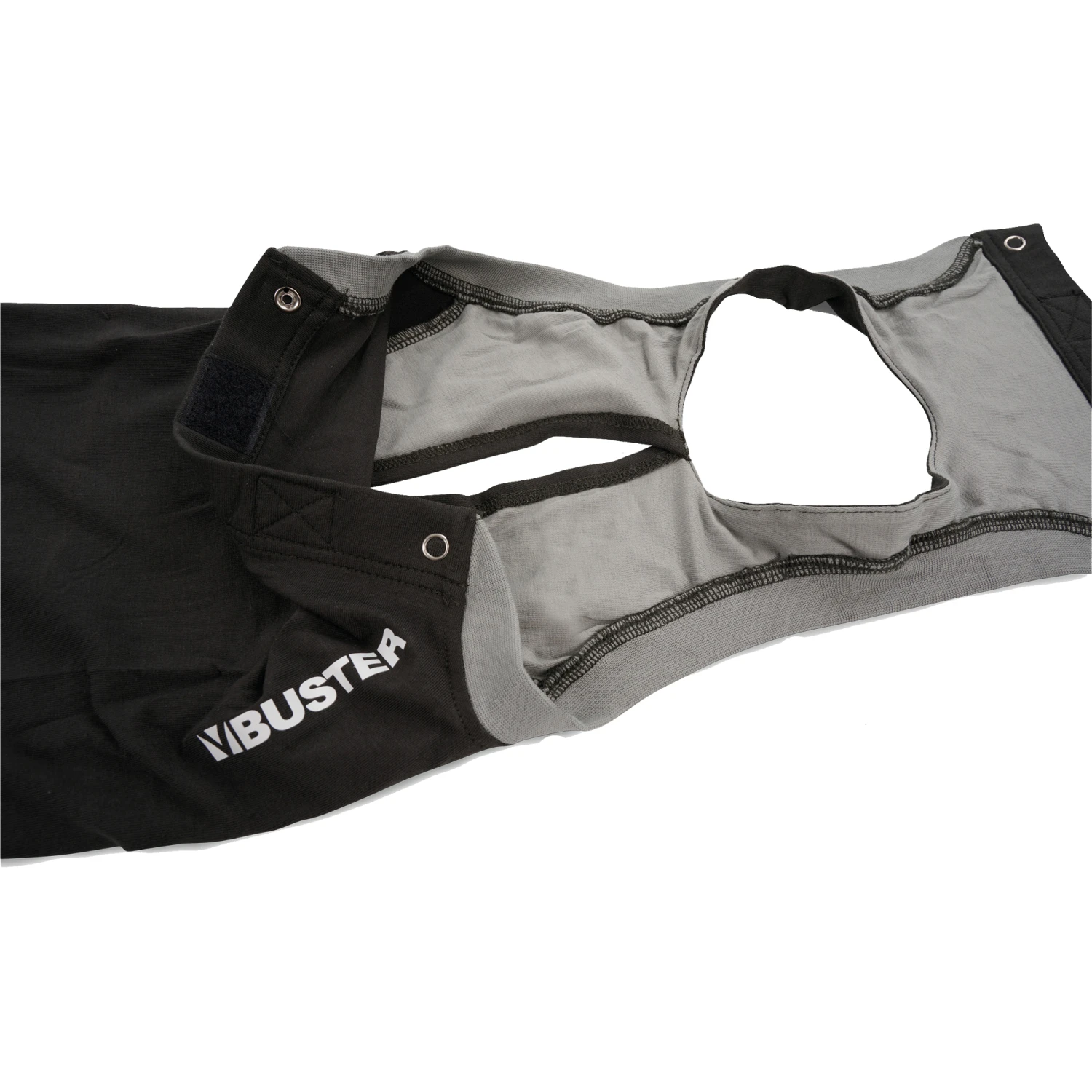 Bescherm de wond van uw hond na een operatie voor optimale genezing. De Bodysuit EasyGo van Buster beschermt en zorgt ervoor dat de hond niet aan de wond zal likken, bijten of krabben. De bodysuit heeft een verlengde staartopening voor honden met een grote/brede staart. Daarnaast heeft de romper een extra spleet, speciaal voor reutjes. Zo kan de hond makkelijk plassen zonder dat het shirt eerst opgerold hoeft te worden. Het shirt is gemaakt van zacht, comfortabel en flexibel katoen en is zeer makkelijk aan te trekken bij de hond. Door middel van drukknoppen kan de bodysuit vastgemaakt worden. Geschikt voor reuen en teven.