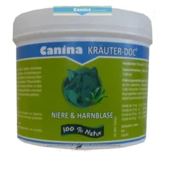 Meng Canina Kräuter-Doc Nieren & Blaas als kuur met het voer gedurende 2 maanden. Na een pauze van 6 maanden de behandeling herhalen. Stop het gebruik van het product tijdens de zwangerschap.