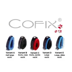 De Cofix is beschikbaar in 5 verschillende soorten borstels. Zo is er voor verschillende soorten vachttypes en hondenrassen een passende borstel. Het maakt niet uit of de hond een kleine Chihuahua, een Retriever of een Duitse Herder is, met de juiste borstel zorgt de Cofix voor een uitstekende en optimale vachtverzorging.
