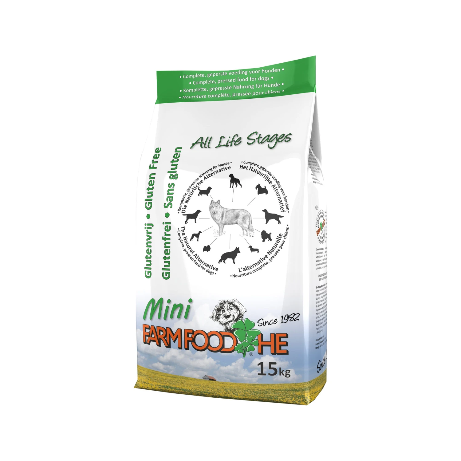 De brokjes van de Farm Food HE Mini Glutenvrij zijn zo ontworpen dat ze goed te eten zijn voor puppy’s en kleine hondenrassen, houdt uw pup of kleine hond van grote brokken dan kan ook gewoon de Farm Food HE Glutenvrij. De voeding is ideaal voor honden met een glutenallergie of met gevoelige, zwakke of geprikkelde darmen. De tarwe in deze voeding is vervangen door rijst en sorghum (allebei de ingrediënten zijn gepoft). Hoewel in de meeste glutenvrije voedingen de tarwe volledig wordt vervangen door enkel maïs, kiest Farm Food ervoor om de grote hoeveelheid maïs te minimaliseren en ook sorghum toe te voegen. Sorgum is een zaad die vergelijkbaar is met rijst en bevat geen gluten die een allergie kunnen veroorzaken. Tevens bevat de glutenvrije variant in plaats van lijnzaadolie ook Schotse zalmolie.