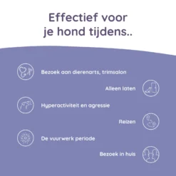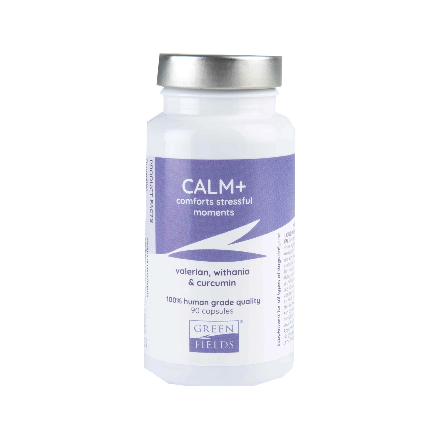 De Greenfields Calm+ is een capsule die speciaal ontwikkeld is om uw hond te kalmeren tijdens stressvolle situaties. Net zoals mensen, kunnen honden ook te maken krijgen met extreme stress. Bij honden heeft deze stress vaak een duidelijke oorzaak. Veel eigenaren merken bijvoorbeeld dat hun hond onrustig wordt bij vreemde, een bezoek aan de dierenarts, tijdens het reizen, een lange autorit, door vuurwerk of andere harde geluiden. Om te voorkomen dat de stress de overhand neemt en uw hond een onprettige ervaring krijgt, geeft u hem een Greenfields Calm+ capsule. Deze capsule is samengesteld uit gepatenteerde ingrediënten en is veilig om toe te dienen aan honden van alle leeftijden, waaronder puppy’s. De capsules zijn samengesteld met Valeriaan & Withania, CurQfen en vitamine B6 en B9.