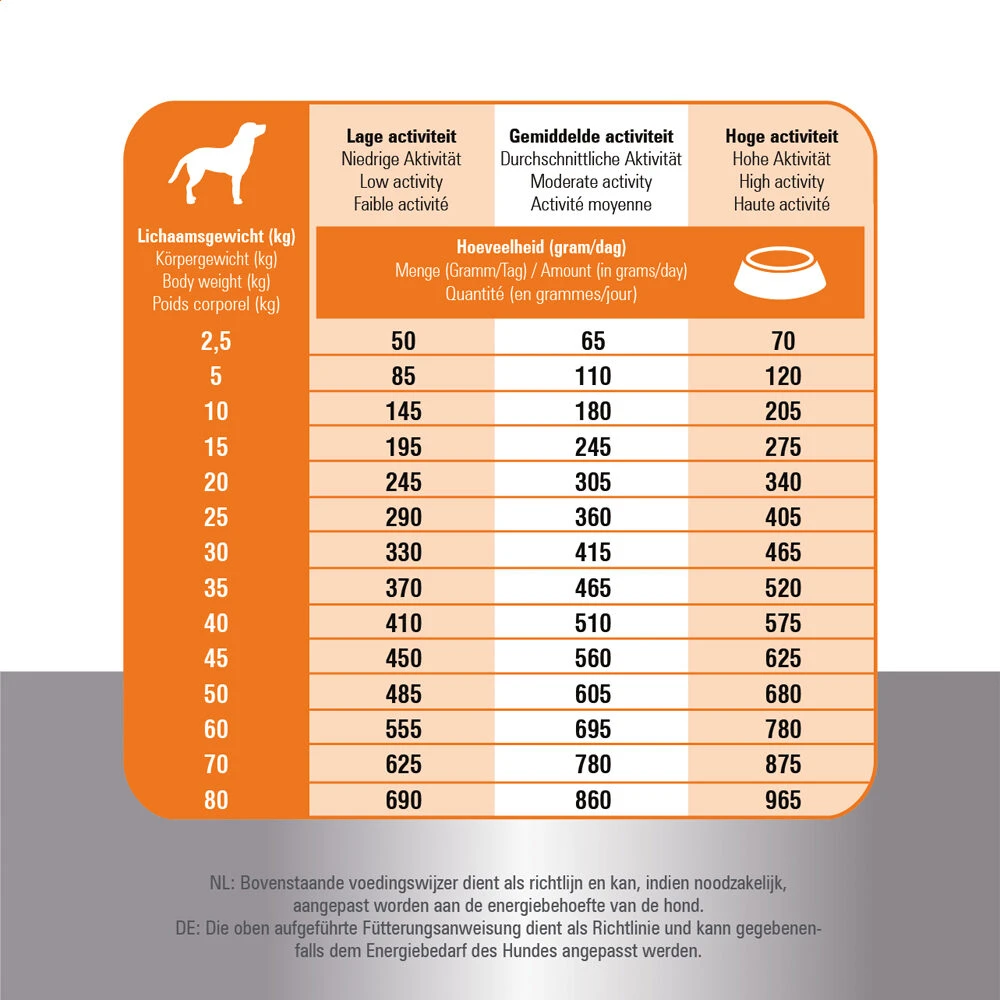 Volwassen honden van middelgrote tot grote rassen tot circa 8 jaar oud.