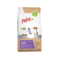 Is uw hond (iets) te dik? Dan kan de ProCare Light Low Calorie van Prins een geschikte voeding zijn voor volwassen honden met overgewicht. De geperste brokken bevatten een laag vetgehalte en extra voedingsvezels, die bijdragen aan het verantwoord afvallen. De stof L-carnitine draagt bij aan het stimuleren van de vetstofwisseling. De extra voedingsvezels in het voer ondersteunen een verzadigd gevoel. De balans aan voedingselementen dragen bij aan een optimale conditie tijdens het afvallen. De eiwitten van kip en kalkoen ondersteunen de groei, instandhouding en de conditie van de spieren.
