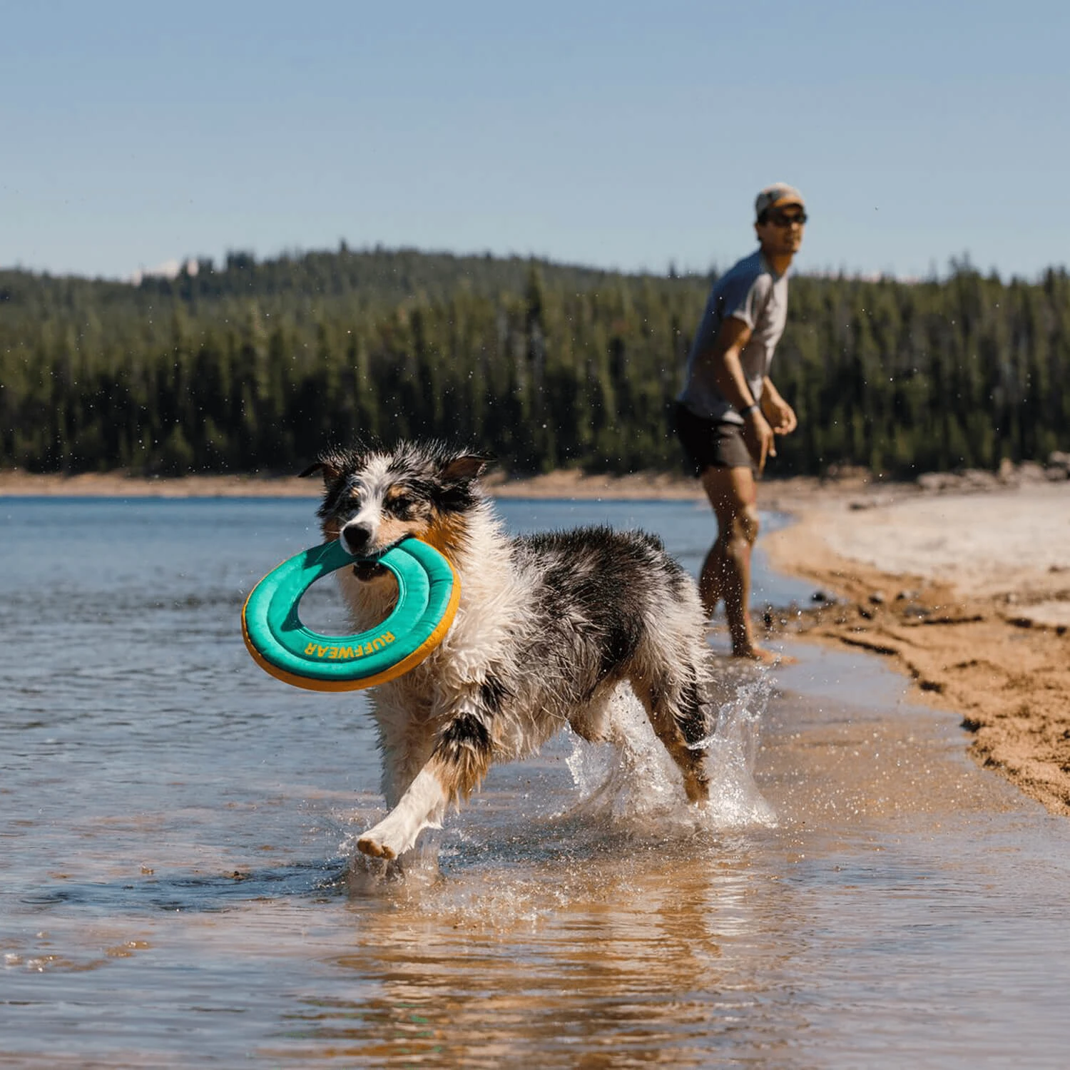 Kent apporteren voor uw hond ook geen grenzen? Leuk! Maar soms ook vervelend omdat u de speeltjes telkens kwijt raakt; in het water, in de sneeuw… Ruffwear Hydro Plane Floating Throw Toy blijft perfect drijven op bijvoorbeeld water, maar ook op sneeuw! De zachte constructie is perfect voor honden die apporteren aan het leren zijn. Door het ontwerp en de flexibiliteit is deze ring ook geschikt voor een spelletje touwtrekken. Ruffwear Hydro Plane Floating Throw Toy is beschikbaar in de maten M (23 cm) en L (30,5 cm) en in de kleur Aurora Teal.