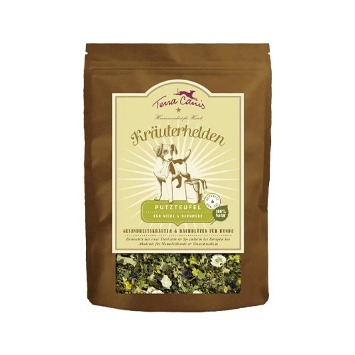 Terra Canis Kruiden Helden voor nieren bevat bachbloesems, waarvan bekend is dat ze een positief effect hebben op de nieractiviteit. Gezonde kruiden zoals brandnetel, berk en guldenroede worden gebruikt ter ondersteuning van gezonde urinewegen. Het bevat ook bachbloesems zoals Ster van Bethlehem, krabappel en wilde haver, waarvan bekend is dat ze een positief effect hebben op de nieractiviteit.