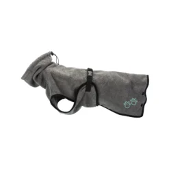 Deze lekkere zachte en warme badjas van Trixie houdt uw hond warm en beschermt hem tegen onderkoeling. De badstof badjas is gemaakt van polyester en katoen en is gemakkelijk aan te trekken door de drukknopen aan de achterkant. In de hals van de badjas zit een elastisch trekkoord zodat deze goed aansluit. Met de borstflap en verstelbare buikriem meet u altijd een perfecte pasvorm aan.