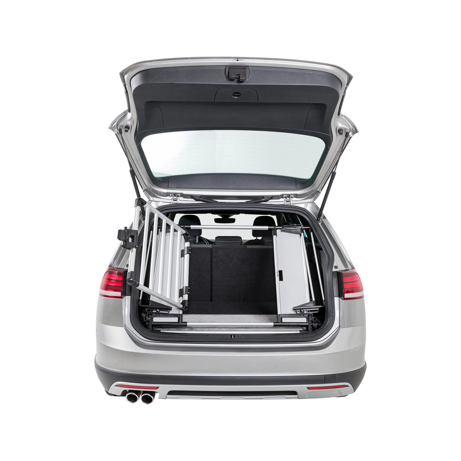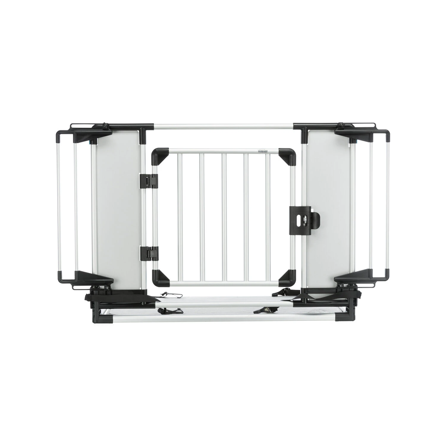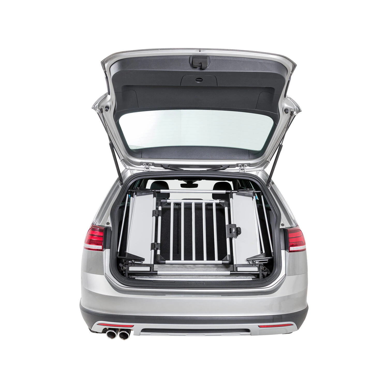 Met het achterhek kan de gehele kofferbak als ligoppervlak gebruikt worden door uw hond. De bodemplaat is voorzien van klittebandpootjes, waardoor het gehele hek stevig op zijn plek blijft staan. De slipvaste ligmat is wasbaar in een wasmachine op maximaal 30 graden Celsius. Het Trixie Universeel Achterhek is gemaakt van aluminium, hardboard en kunststof materialen en wordt geleverd met vier bevestigingshaken. Ook heeft het deurtje een sleuf voor een hangslot, het slot zelfs is niet inbegrepen. De breedte is aan te passen van 94 tot 114 centimeter, de hoogte is 69 centimeter en de diepte is 53 centimeter. Kijk uiteraard goed naar de afmetingen van uw kofferbak en controleer of het geheel past. Het hek is geschikt voor de meeste hatchbacks, stationwagons en SUV’s.